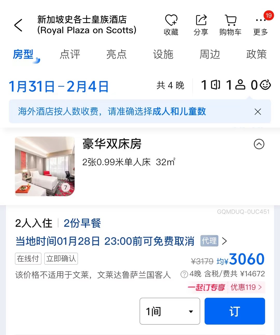 • 新加坡酒店入住时间常规为下午3点及之后,退房时间为中午12点,敬请知晓;如超时,费用旅客自理