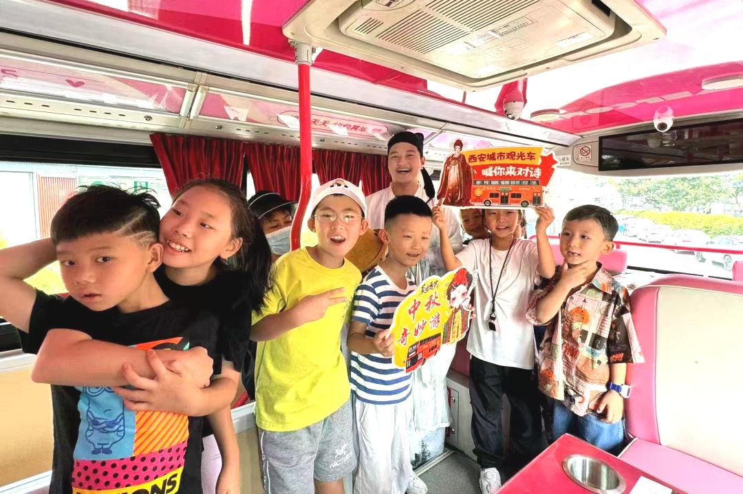 车外掠过钟楼城墙,窗内窗外皆是盛唐风景。这不仅是观光 更是一堂行走的国学课,一场流动的诗词会,让孩子在欢声笑语中,与历史人物相遇 让唐诗的种子在心中生根发芽