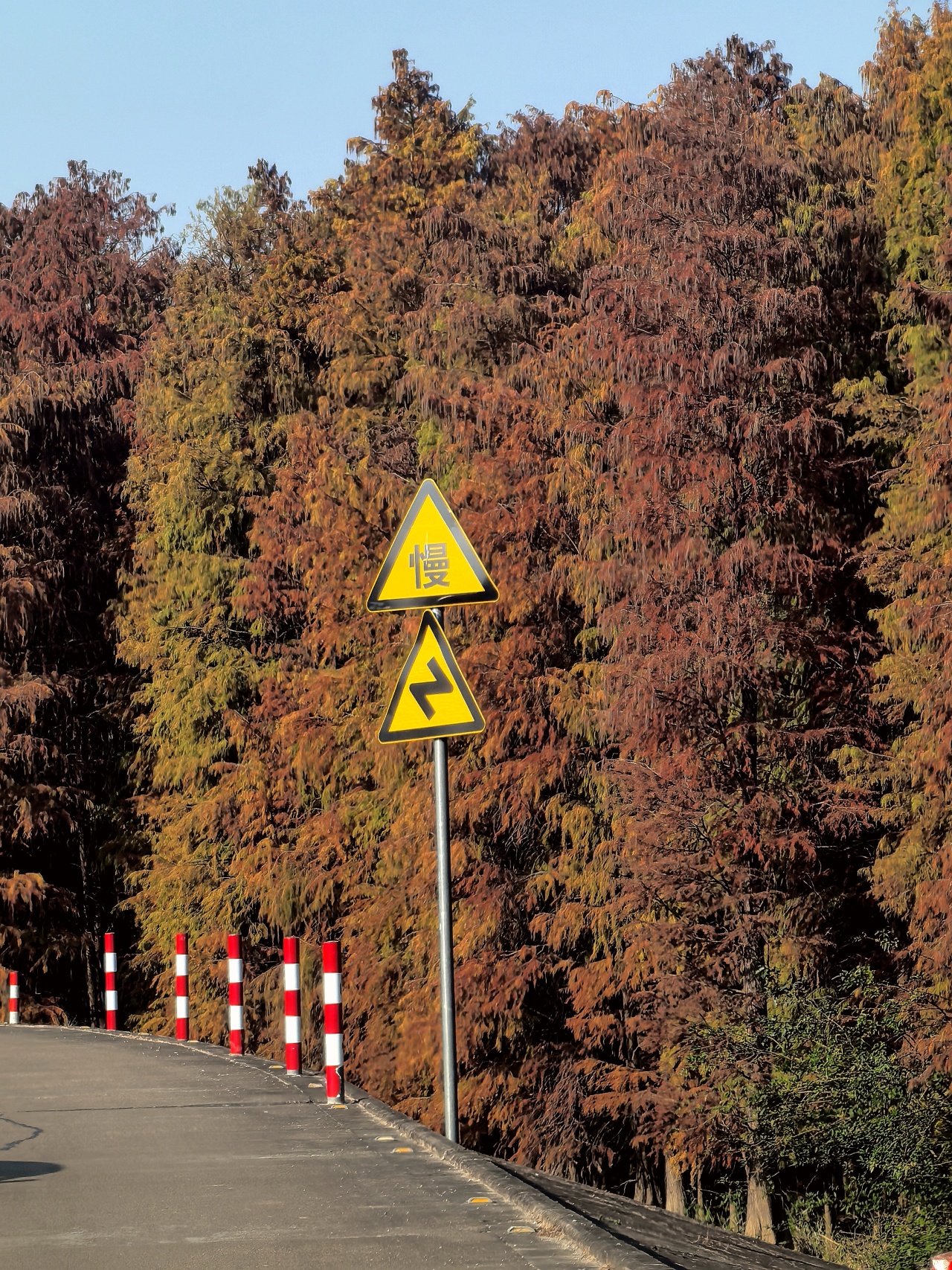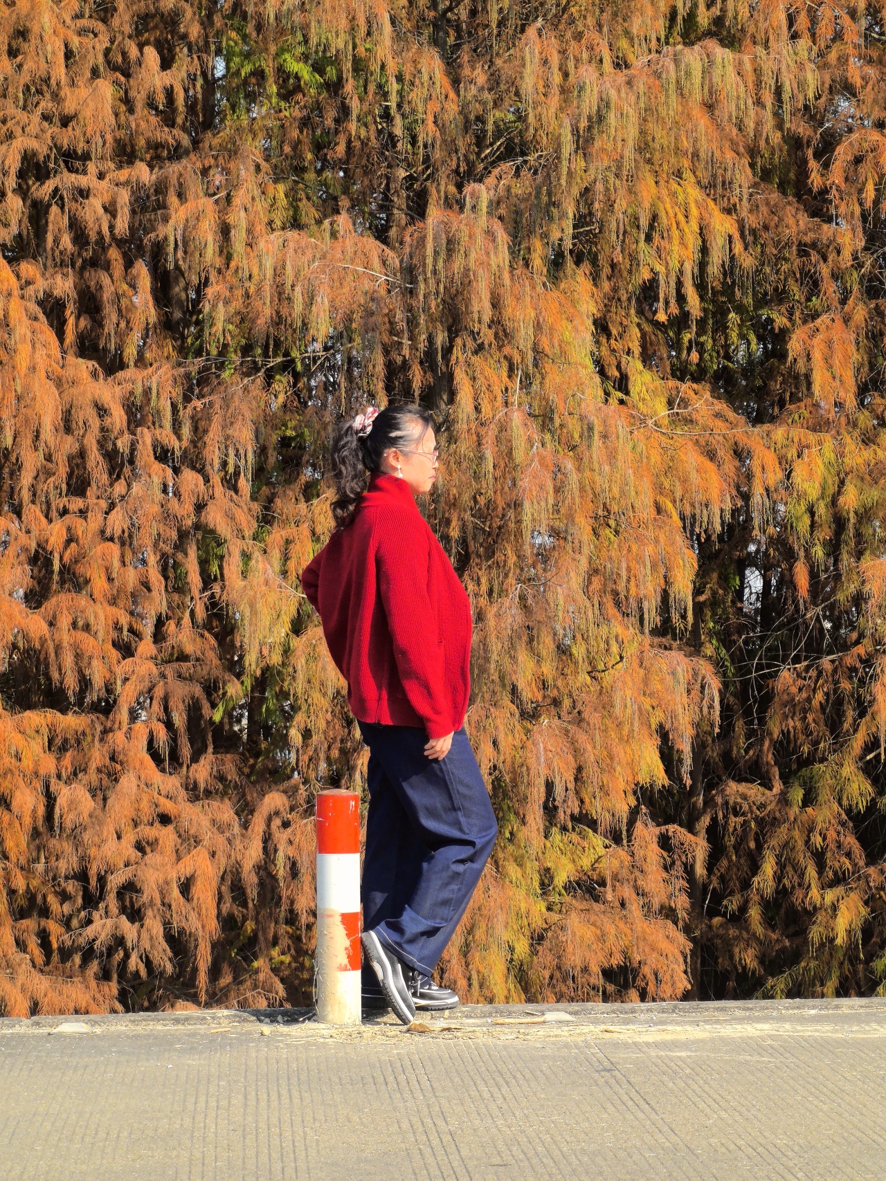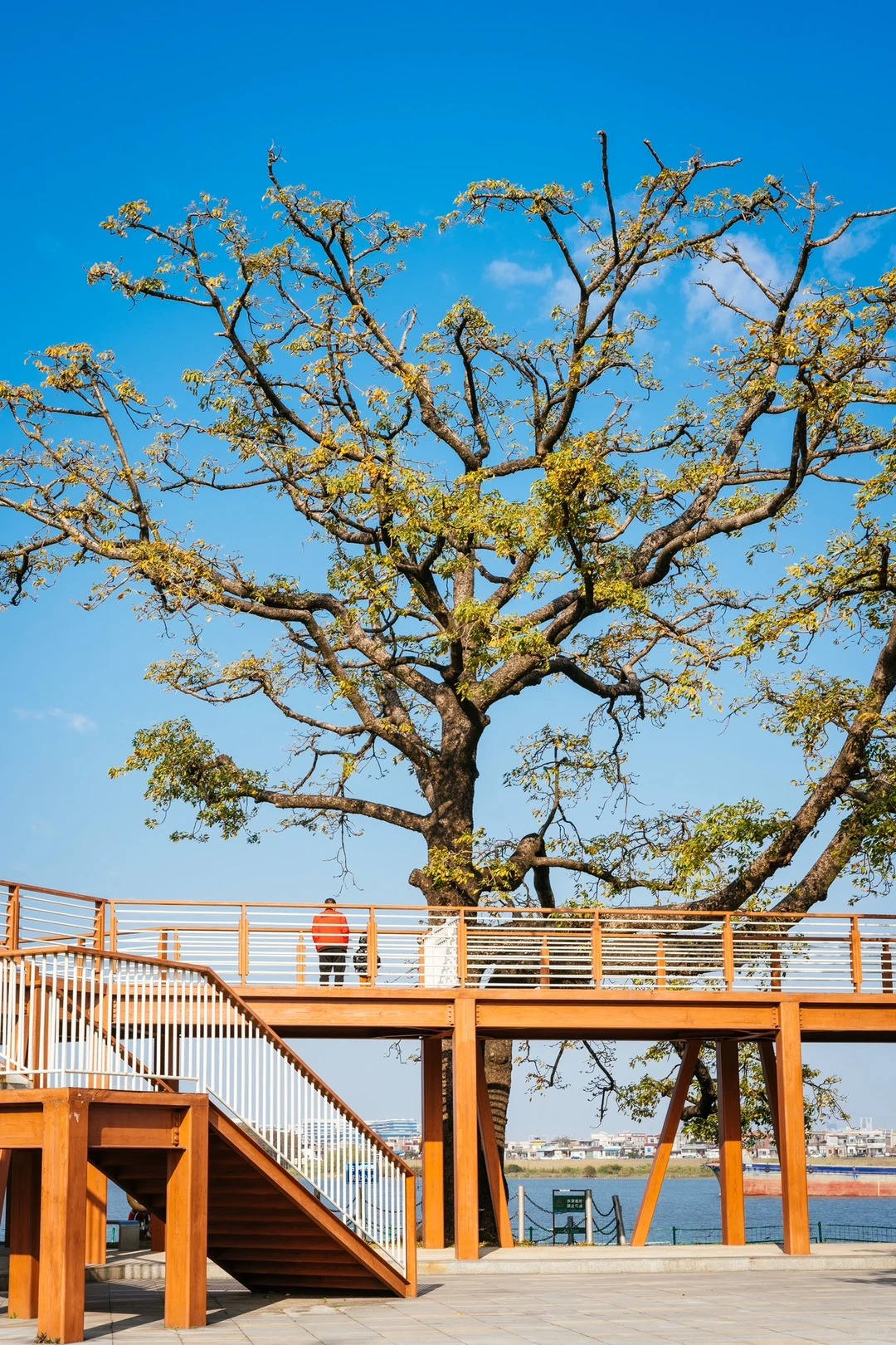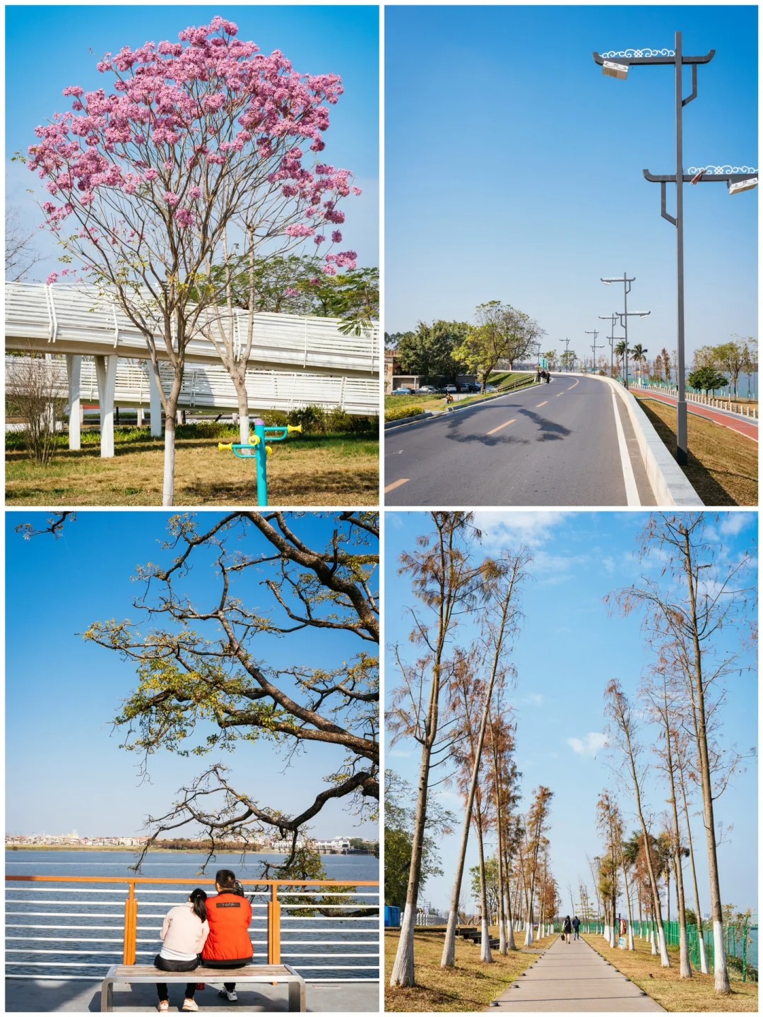 顺德的冬天把浪漫都藏在了乌洲水闸的落羽杉里,几公里的红杉沿江水铺展,焦糖色、橙红色交织,倒映在粼粼波光里,走进去就像闯进莫奈的调色盘。