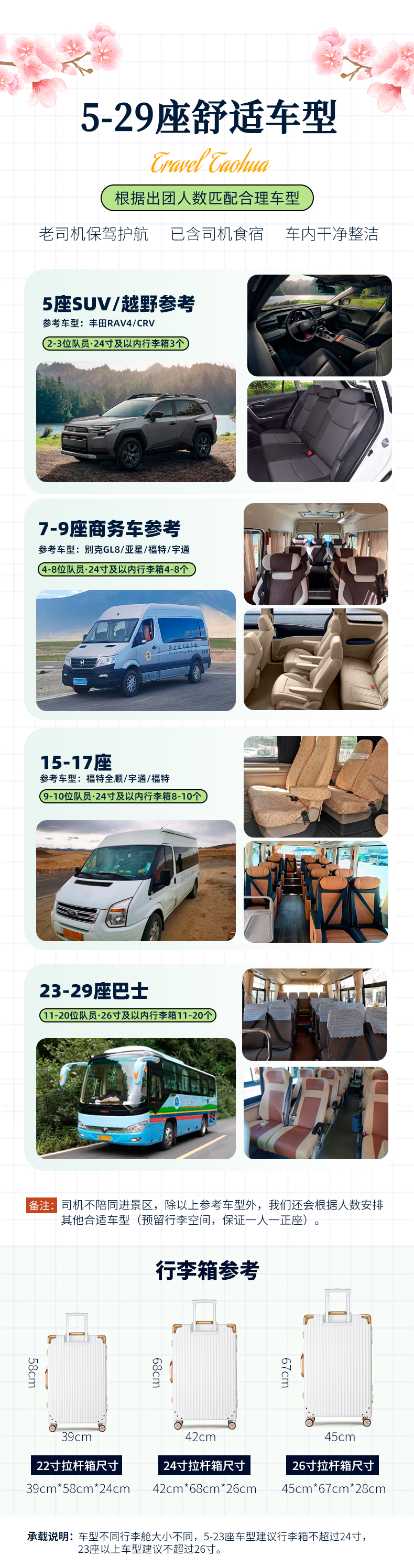 (3)座位:左手第一个座位为驾驶员,右手第一个座位为导游,其他为普通座位,上车后请自行选择座位,高原长途旅行,队员之间请互相谅解;