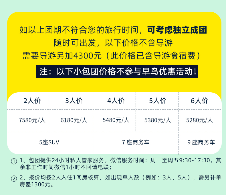注:8人精品小团:司机兼向导,8人封团。