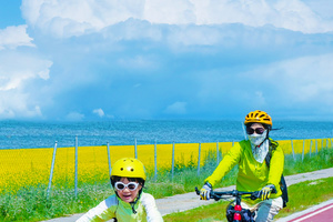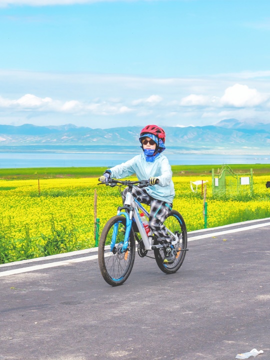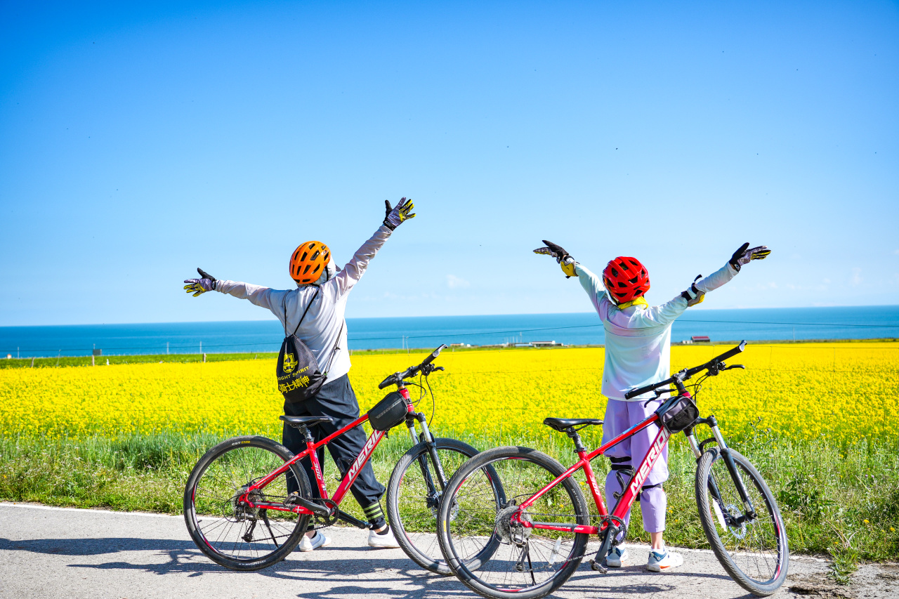 下午在骑行营地,穿戴骑行装备,沿青海湖自行车专用道进行骑行,踩着单车穿行在湖边油菜花海,每踩一脚都是风景,完成20公里骑行挑战。晚上入住湖边酒店,自由欣赏青海湖日落景观。
