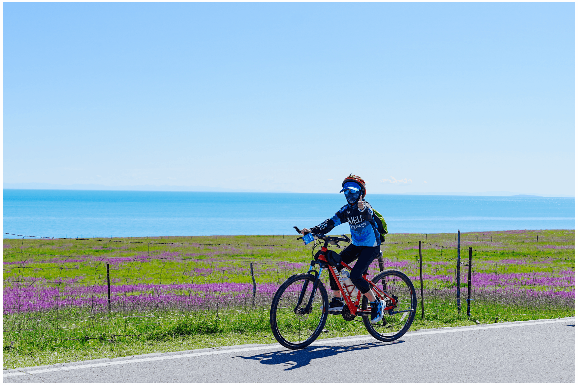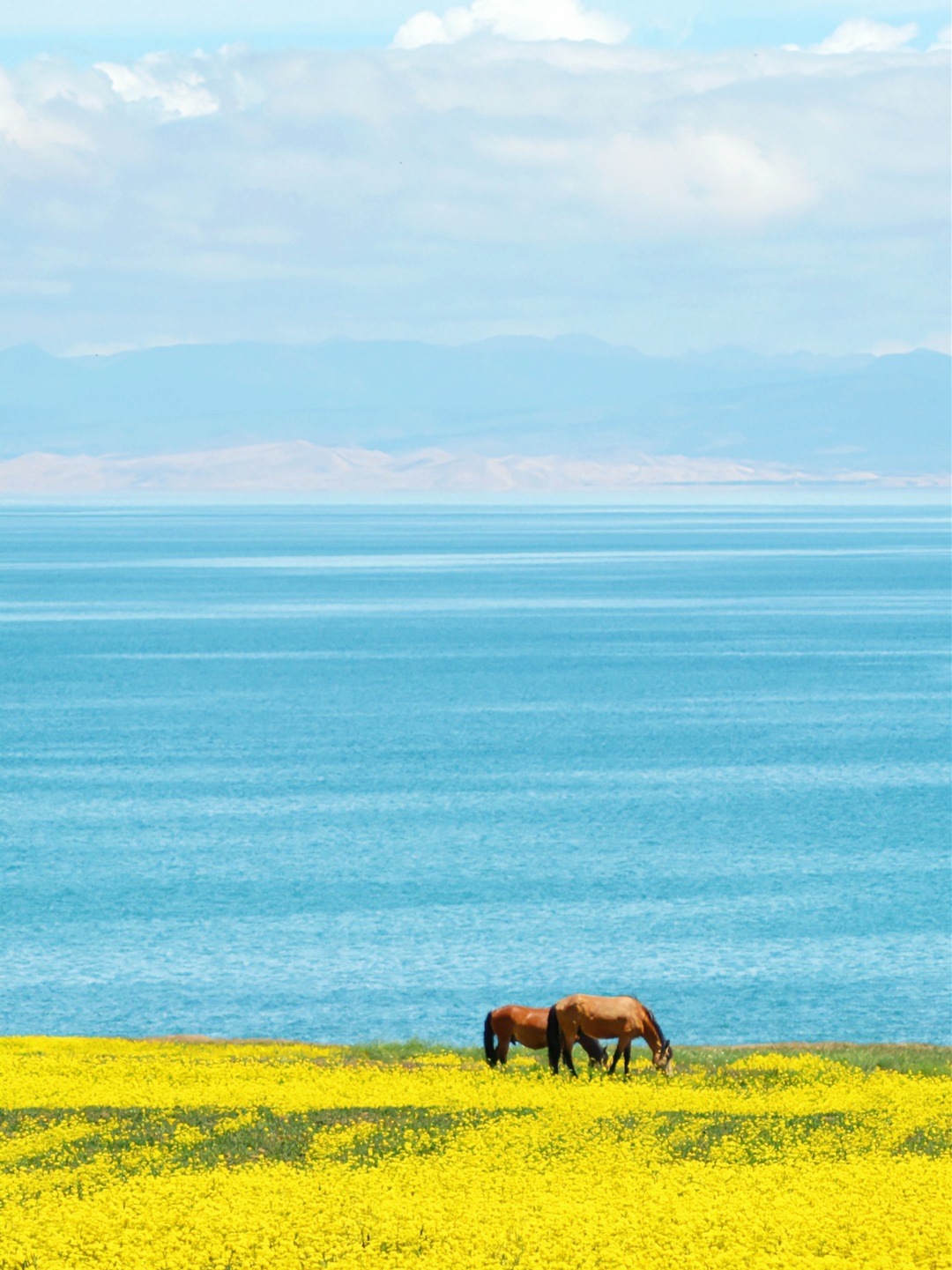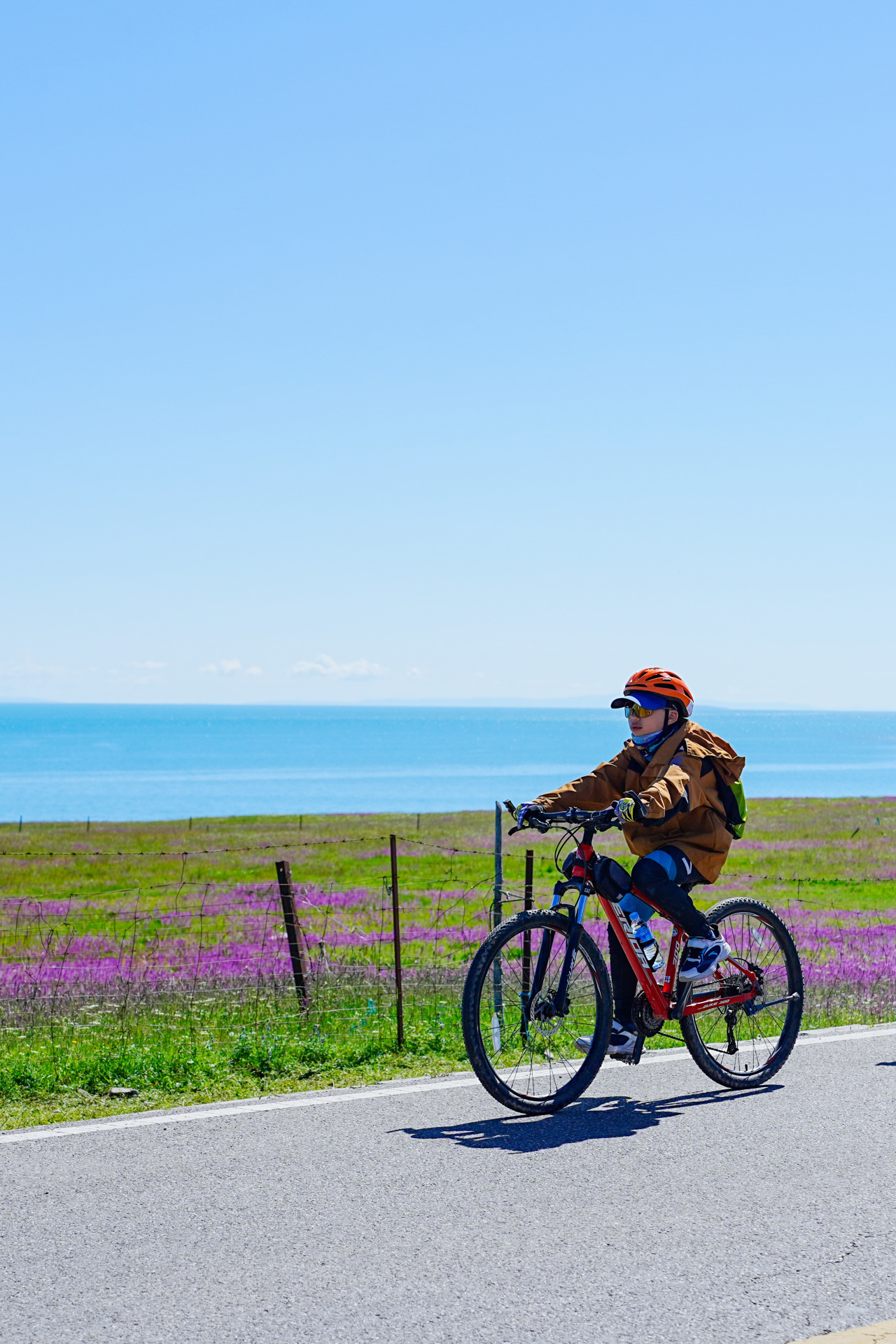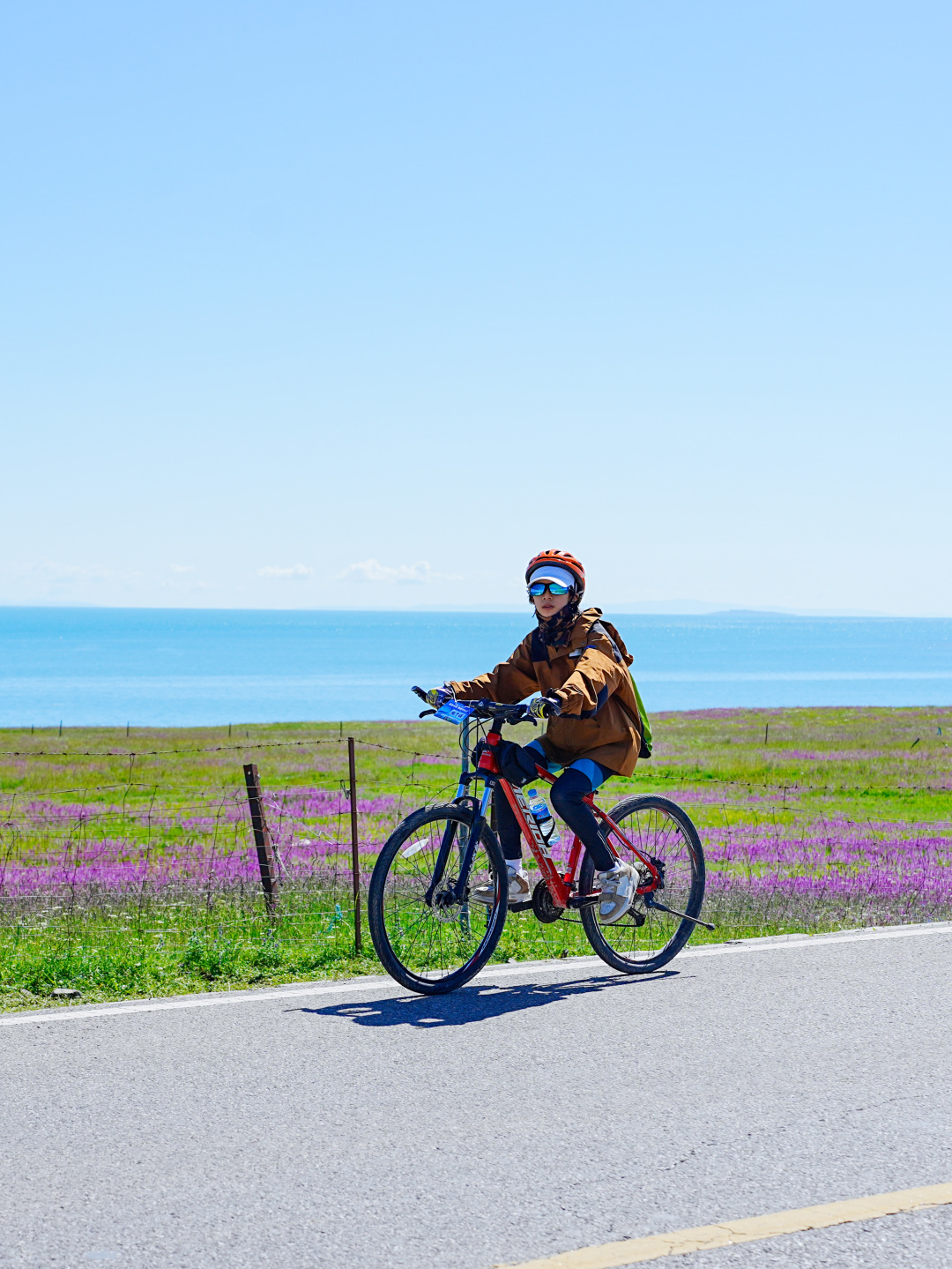 离湖最近的环湖西路骑行25公里,途经东格尔观景台和泉湾湿地,还可抵达位于青海湖边的悬崖寺庙,在草原和湿地间看斑头雁棕头鸥飞来飞去,感受宁静慵懒的假期时光。