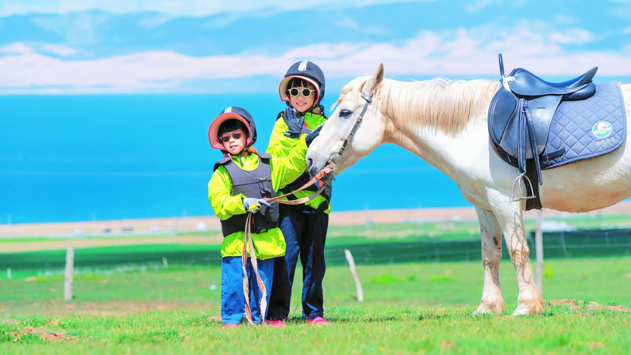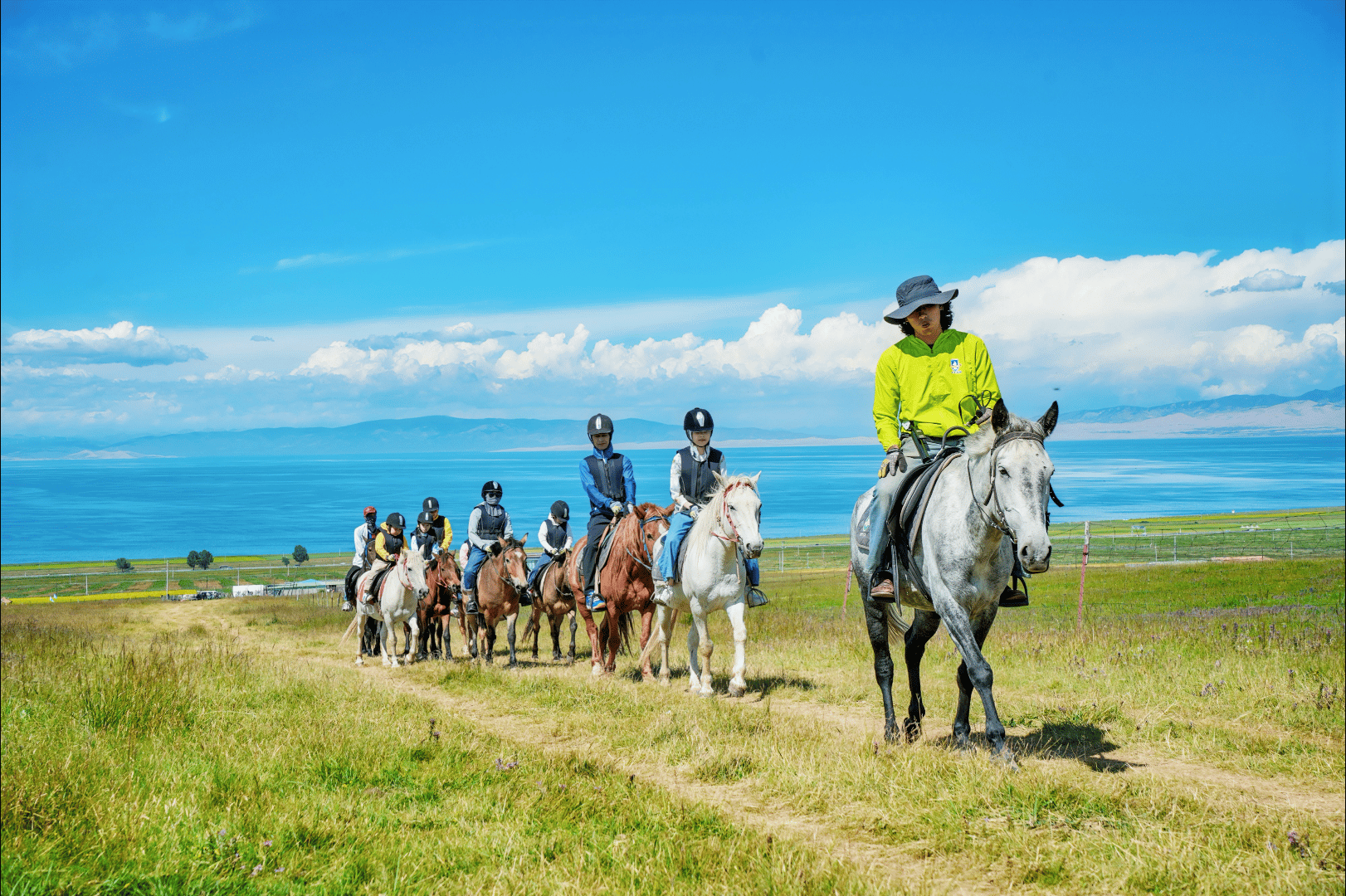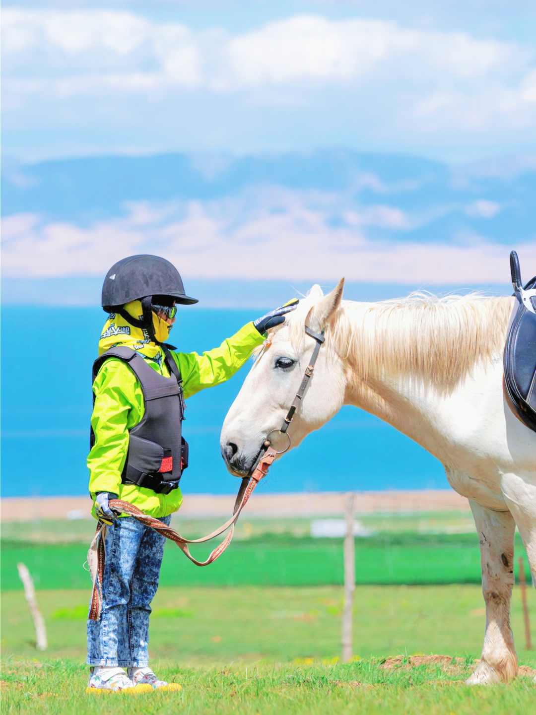 出发前往青海湖,途径环湖赛的重要比赛赛段云上巴卡台草原,感受高原草原云卷云舒风吹草低见牛羊的美。抵达青海湖马场,学习基础马术知识,穿戴好马术背心,头盔,在教练的陪护下沿着草原尝试独立骑马。跟马匹从陌生到熟悉,紧张到放松,享受与动物协作的喜悦,之后策马湖畔,纵情草原。