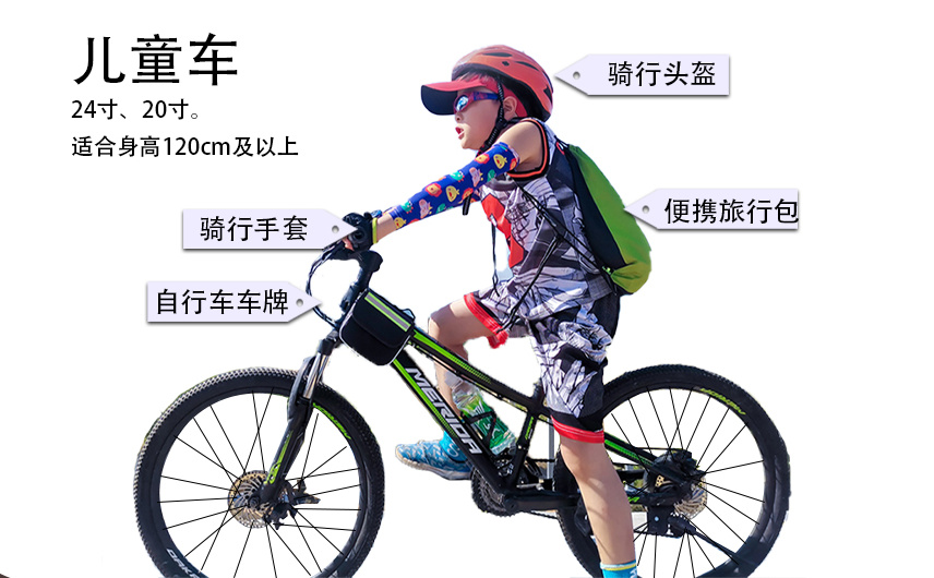 ☑骑行装备:品牌山地自行车、头盔、魔术头巾、束裤带、雨衣,手套、补胎打气工具,安全服