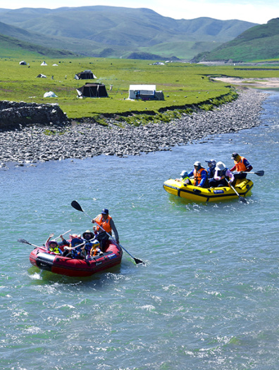 下午在祁连山草原私家营地追逐鼠兔,举行草原运动会和天幕下午茶,之后沿着青海湖母亲河开展一段大河漂流,沉浸在极致的草原风光里。晚上入住青海湖北面的海滨藏城刚察县。