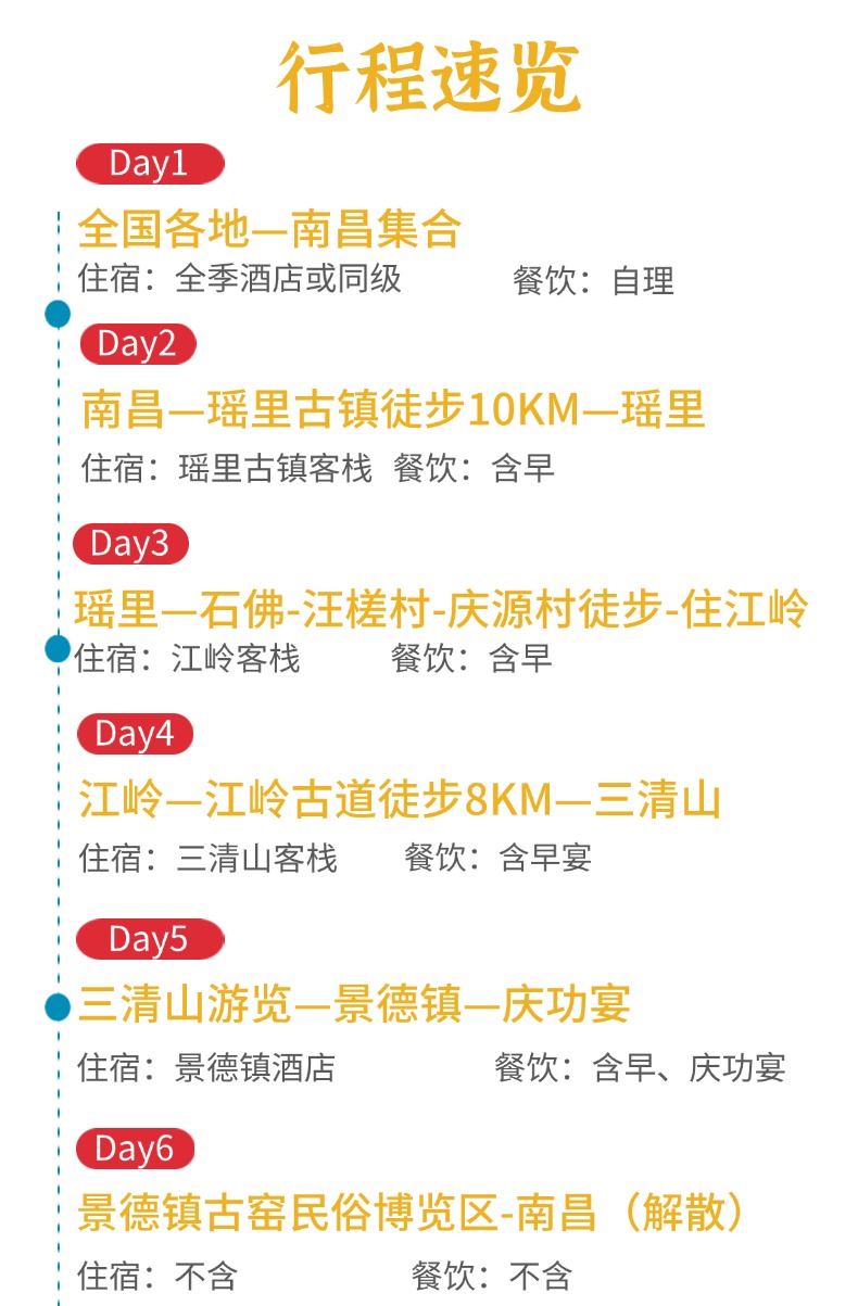 2.住宿:南昌一晚全季或同级、瑶里客栈、庆源客栈、三清山客栈、景德镇携程四钻酒店;