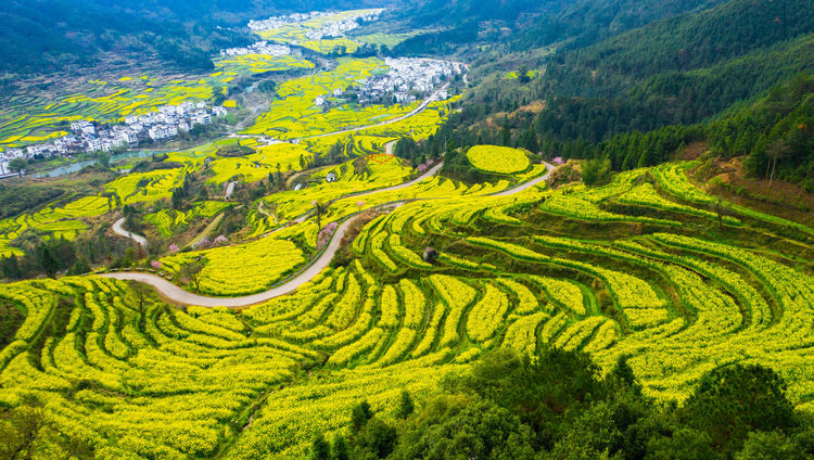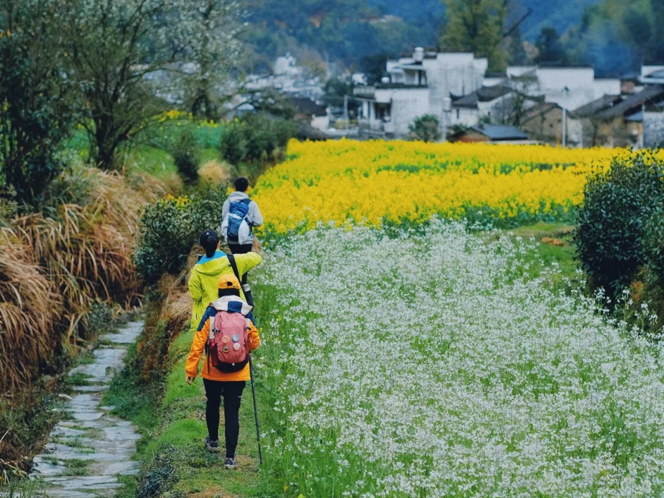 早餐后出发徒步江岭古道,穿行在婺源规模最大的梯田油菜花海中,一路被金黄花海环绕,步步皆景。