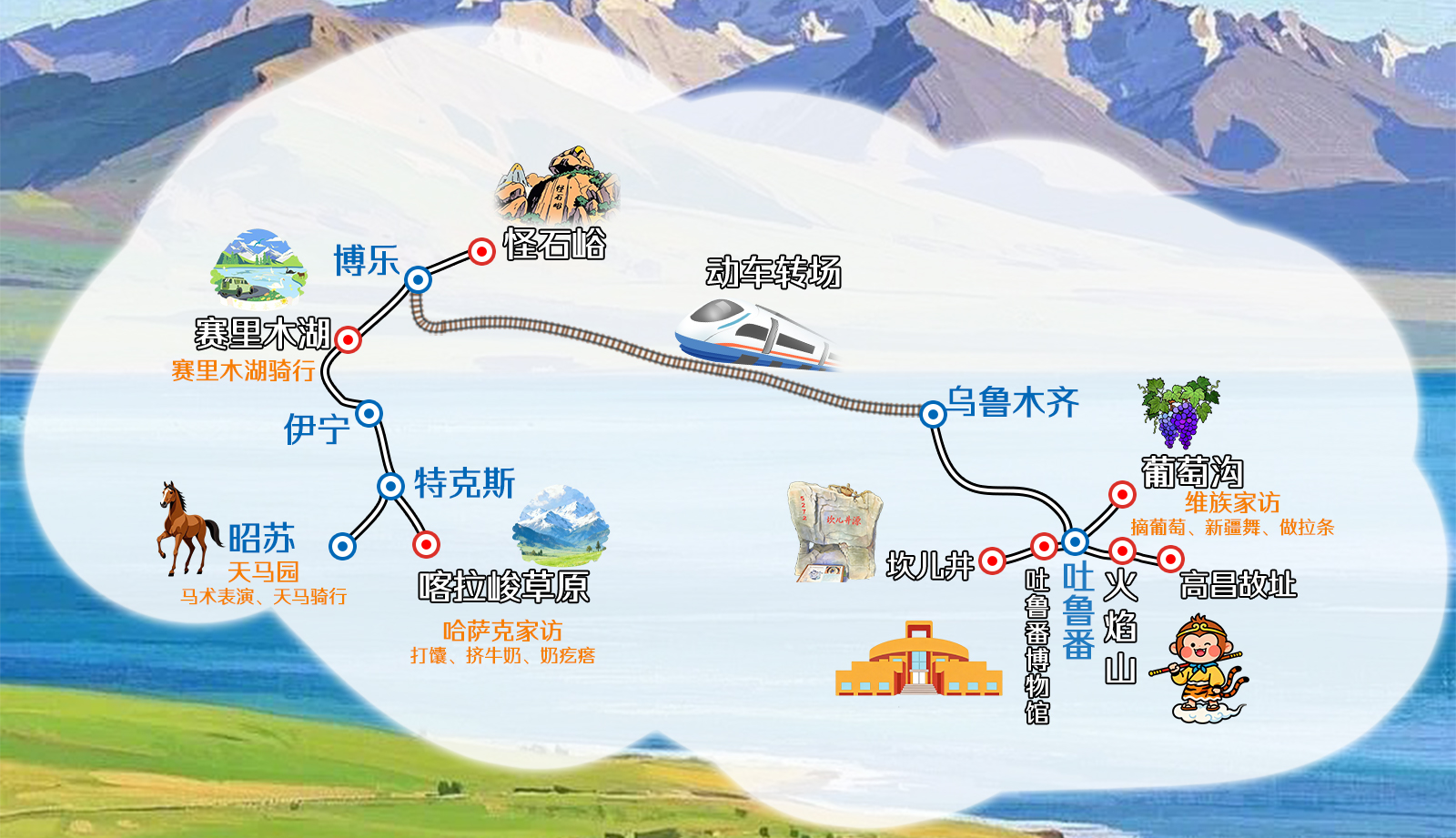 串联吐鲁番盆地,博尔塔拉及伊犁地区