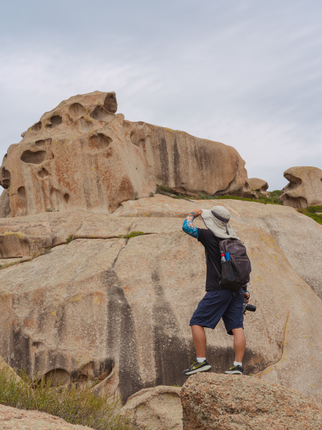 在哈中边境的阿拉山口下徒步怪石峡谷