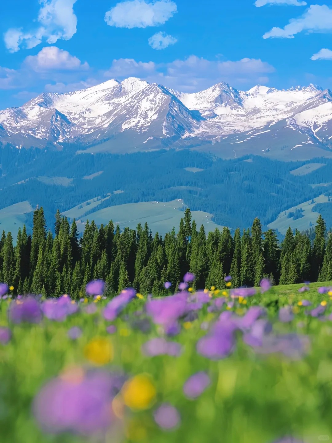 早上前往喀拉峻景区,作为世界自然遗产的喀拉峻游客络绎不绝,其精华就是东景区,我们大清早出发,错开人流,乘坐景交车到达鲜花台,然后从这里边走边拍徒步4小时抵达猎鹰台,今天不赶路,花大半天时间深度感受天山北麓的美景。晚上前往昭苏县住宿。