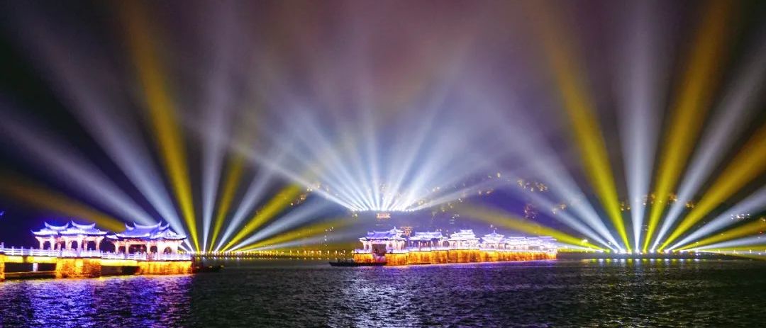 灯光秀是配合着广济桥和后面的山体,配上各种High的音乐,差不多十分钟,关键是免费的。