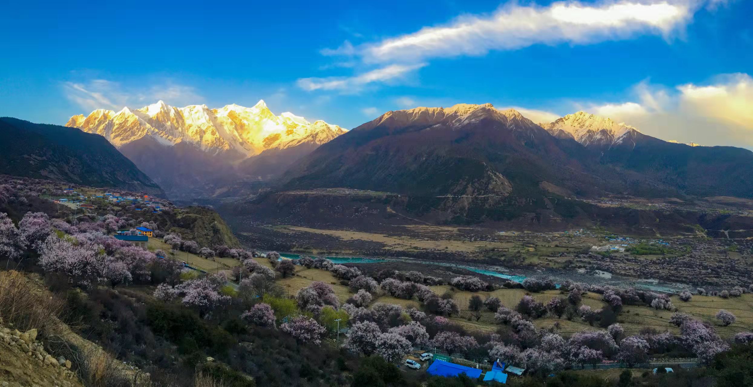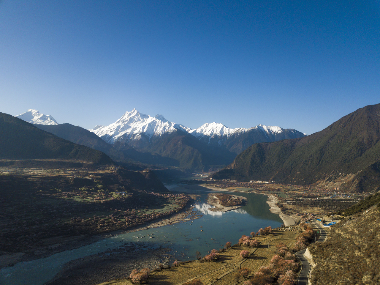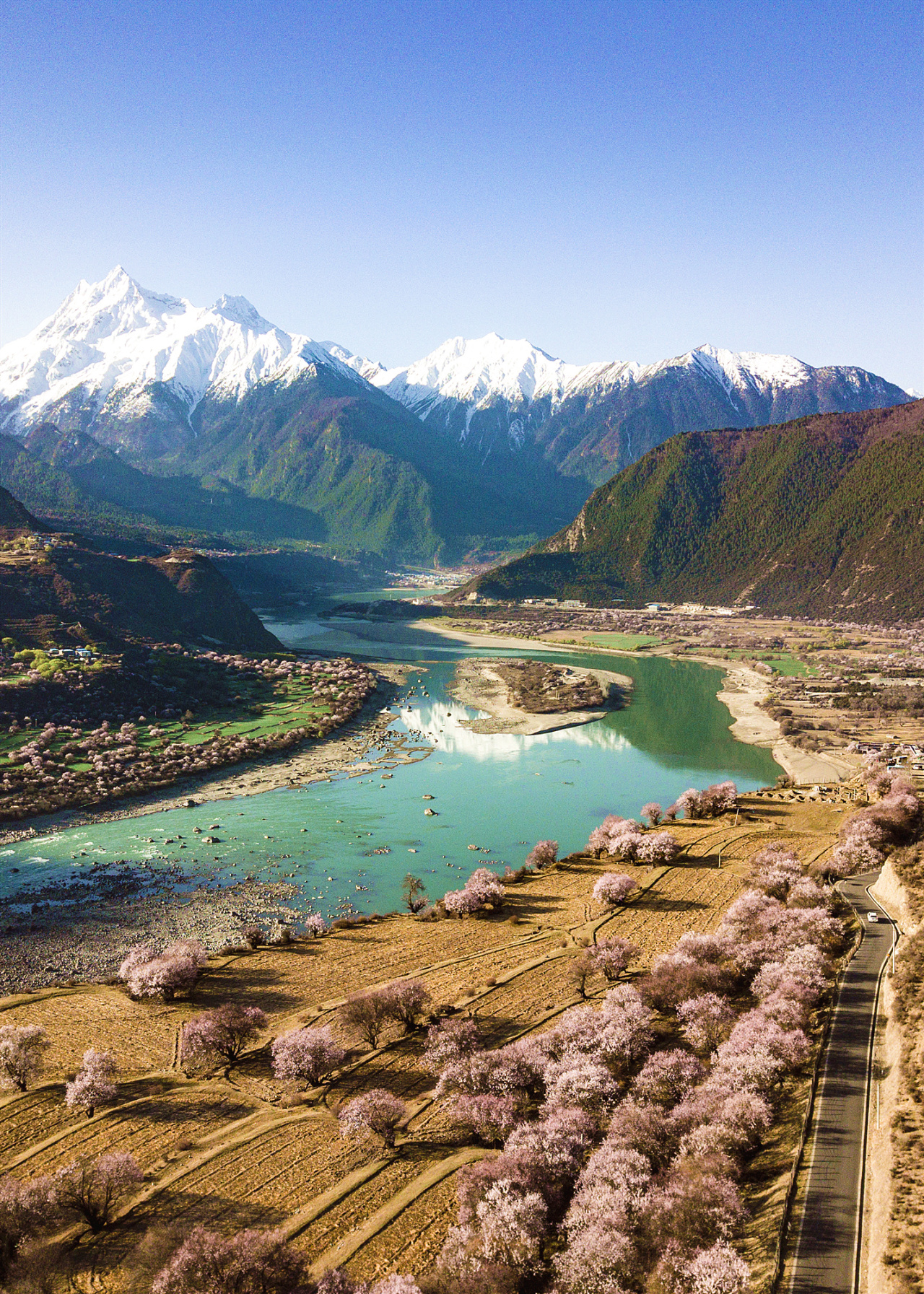 波密桃花沟位于西藏林芝市波密县,四周被雪山、森林、桃花和河流环绕,被誉为“西藏的瑞士”。波密桃花沟的桃花树,在河谷里星罗棋布,错落有致;或三五成群,仙女微步;或林深茂密,群象起舞;或老树盘根,桀骜不驯;远处青山,白雪皑皑;山脉起伏,连绵不断。这里是桃花与雪山最美的结合,雪域桃花,一步一景。波密桃花沟有十万株野生桃树之多,还获得了中国最大桃花谷的吉尼斯记录认证。今天我们将住在桃花沟慢慢欣赏夹道而高大桃林,到达酒店后徒步桃花沟周边小村庄,真正的深入深度游览波密的雪域春天。
