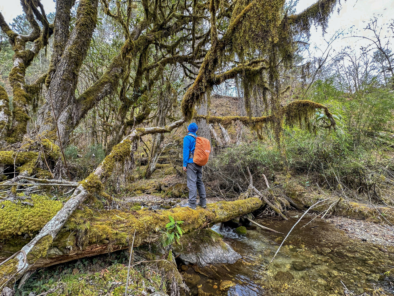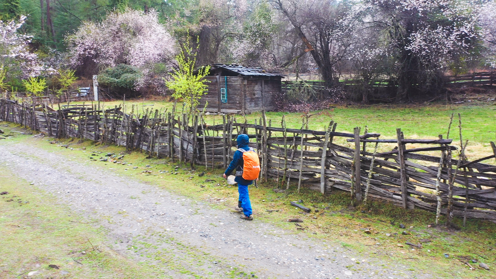 从岗美村穿越岗云杉林,经过草湖,最后抵达古乡巴卡村,徒步穿越约10公里,沿途会穿越无数个被桃花包围的村庄,当然也有高大原始的云杉森林。