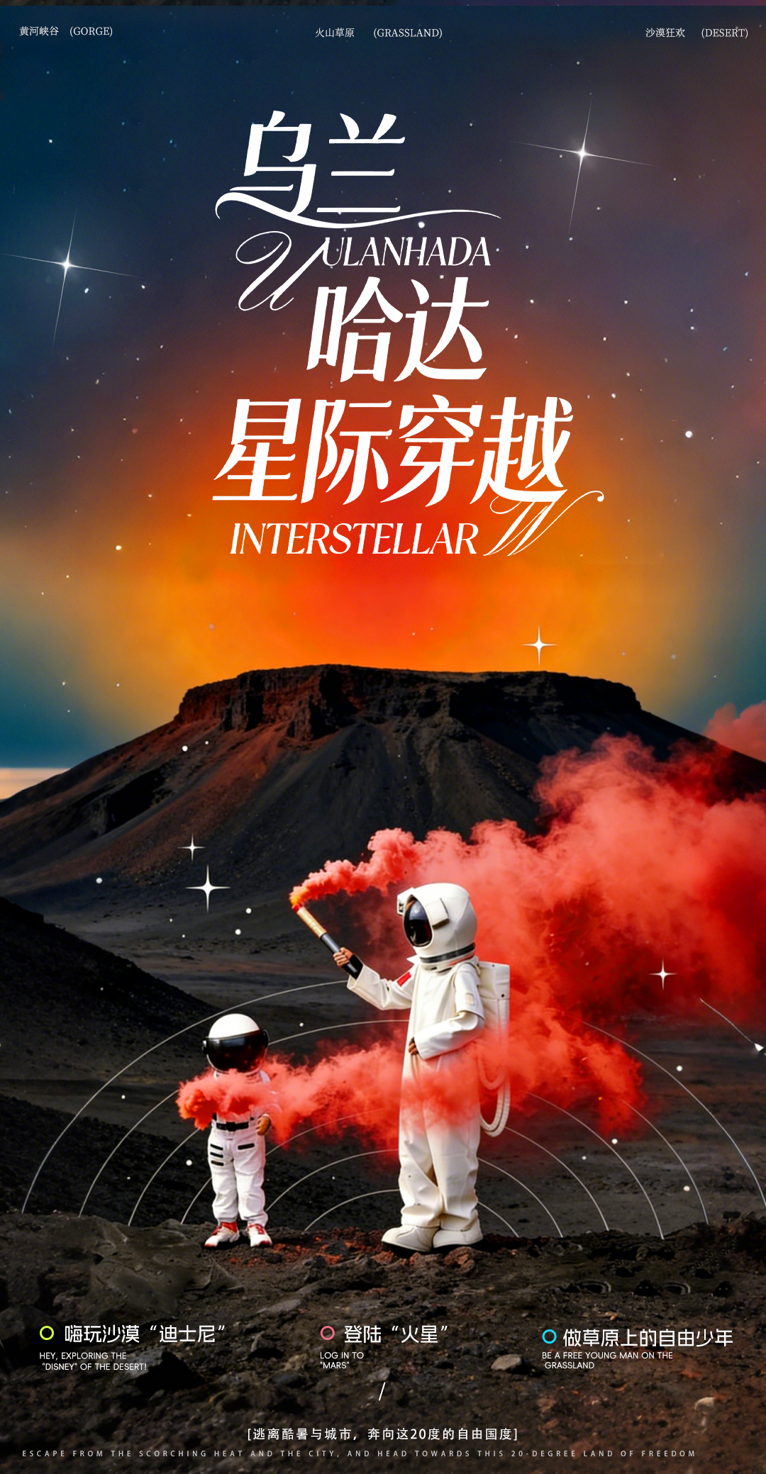 乘船游黄河峡谷、爬火山、穿宇航服漫步“火星”等