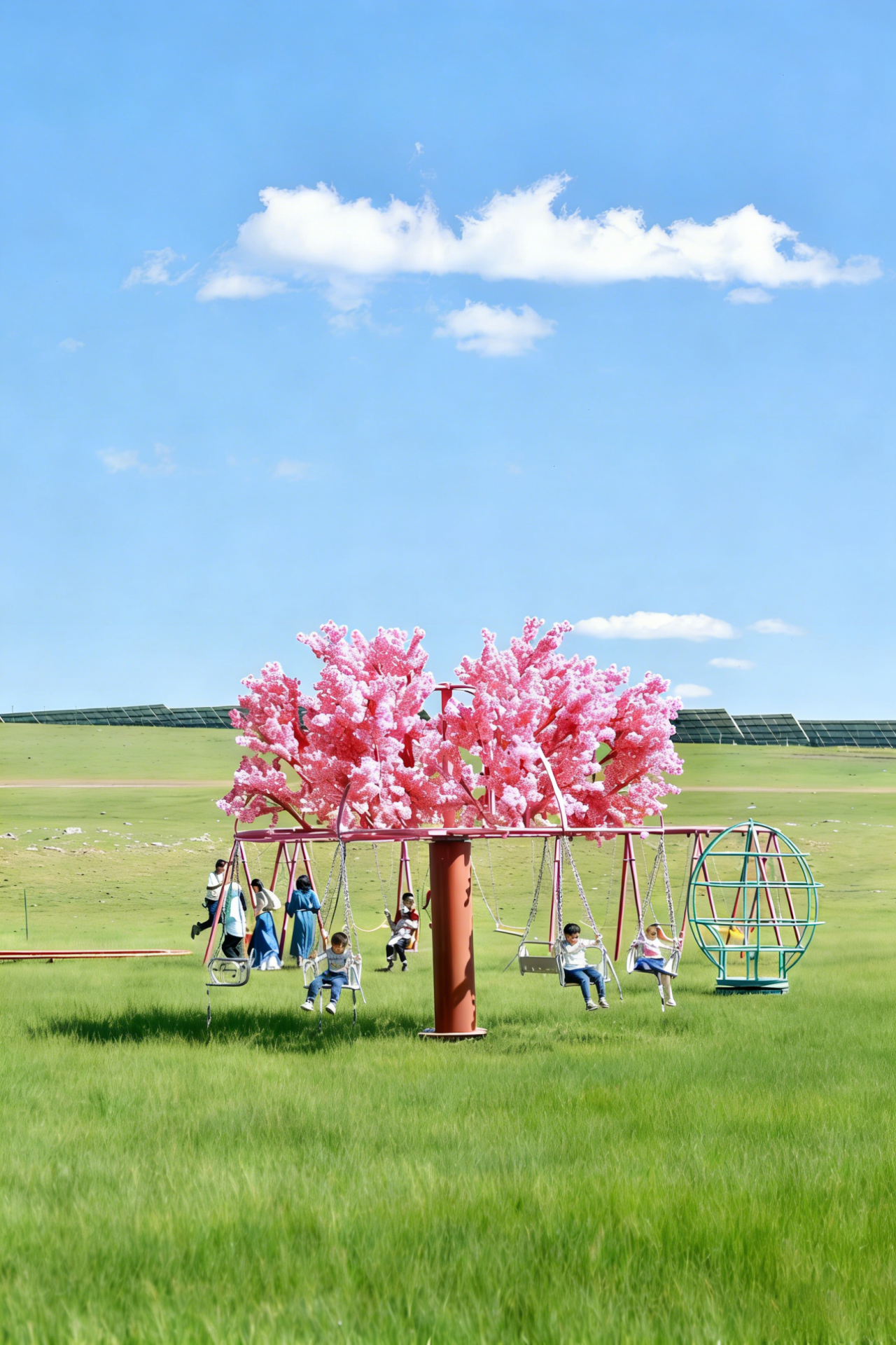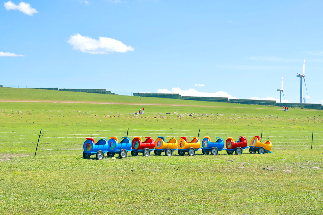 网红秋千、蹦蹦床、品奶茶、蒙古服饰拍照、拔河比赛、射箭、摔跤、足球、捡牛粪、喂小羊、网红滚筒、草原滑草、草原多彩小火车等