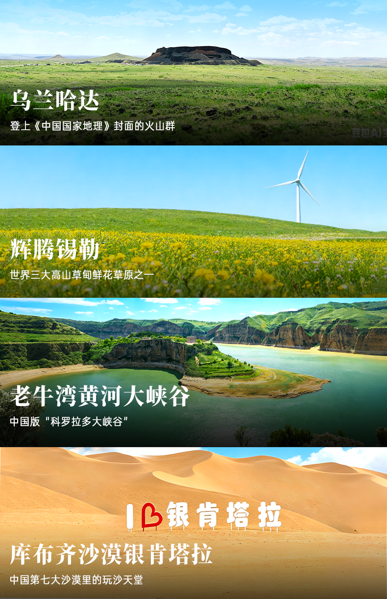 一趟旅程,集齐火山、草原、沙漠、峡谷、长城。