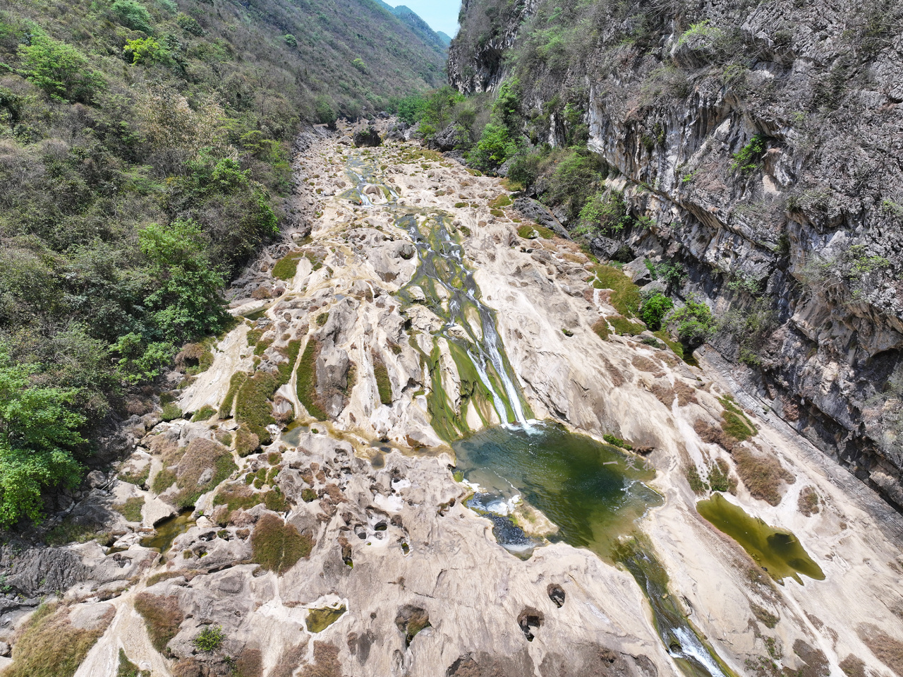早餐后乘车前往羊皮洞瀑布,从起点徒步约4公里到达峡谷底部瀑布奇观,凹造型拍美照,近距离感受磅礴的‘天河坠地’景观。