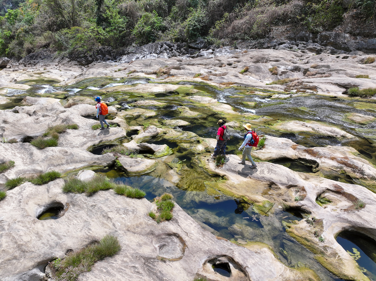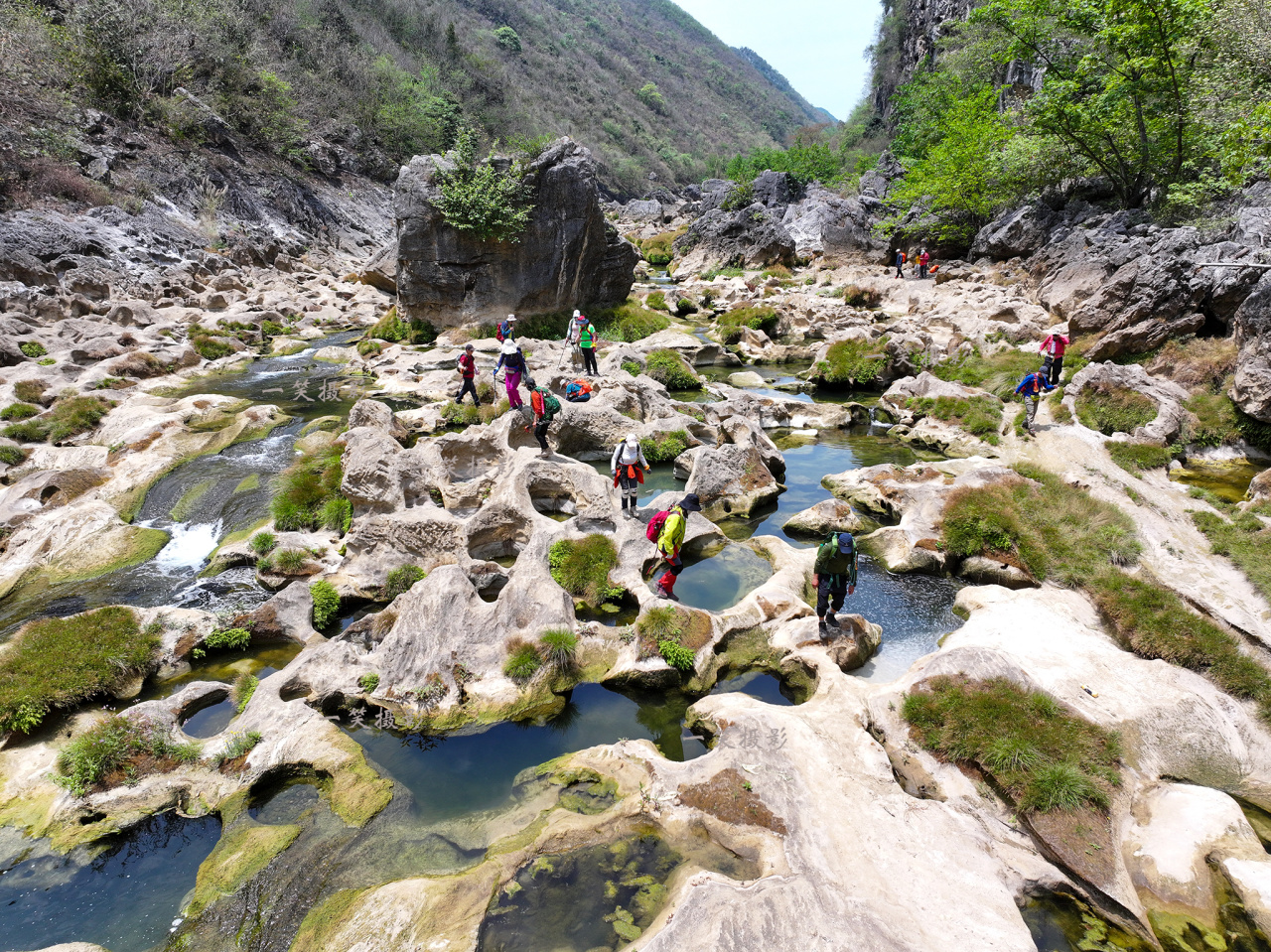 早餐后从酒店出发,今天的徒步行程全程徒步约10KM左右,一路经过乡村小路、干涸的河道、高䇯的水坝、形态各异的溶洞。有的洞穴几十丈高,有的仅一人通过