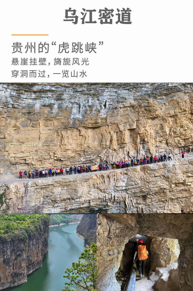 • 乌江密道:沿着悬崖挂壁徒步,穿越神秘的乌江源百里画廊,感受大自然的鬼斧神工。